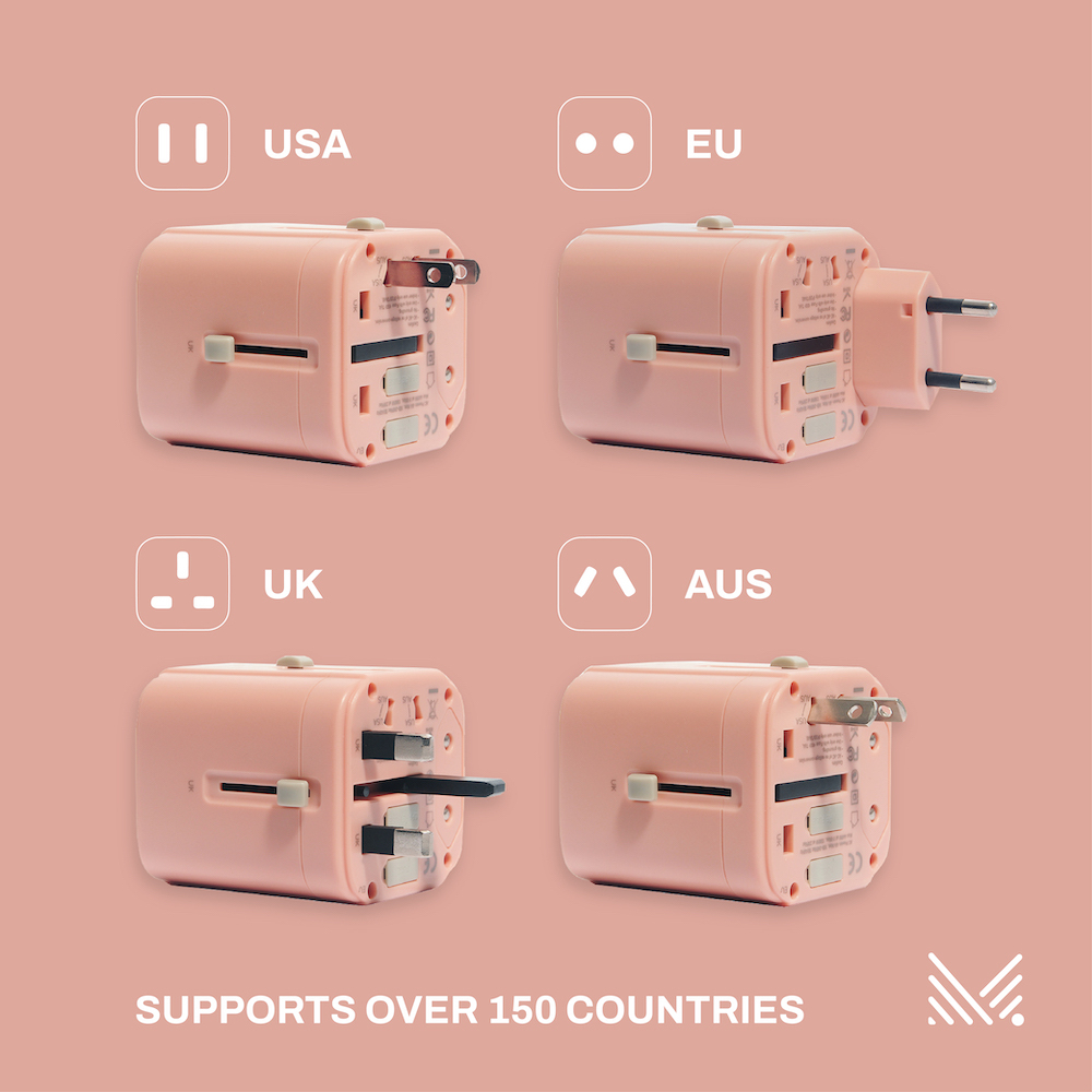 The Bon Voyage Travel Adaptor supports over 150 countries in the world. It makes sure your devices can be used anywhere in the world.