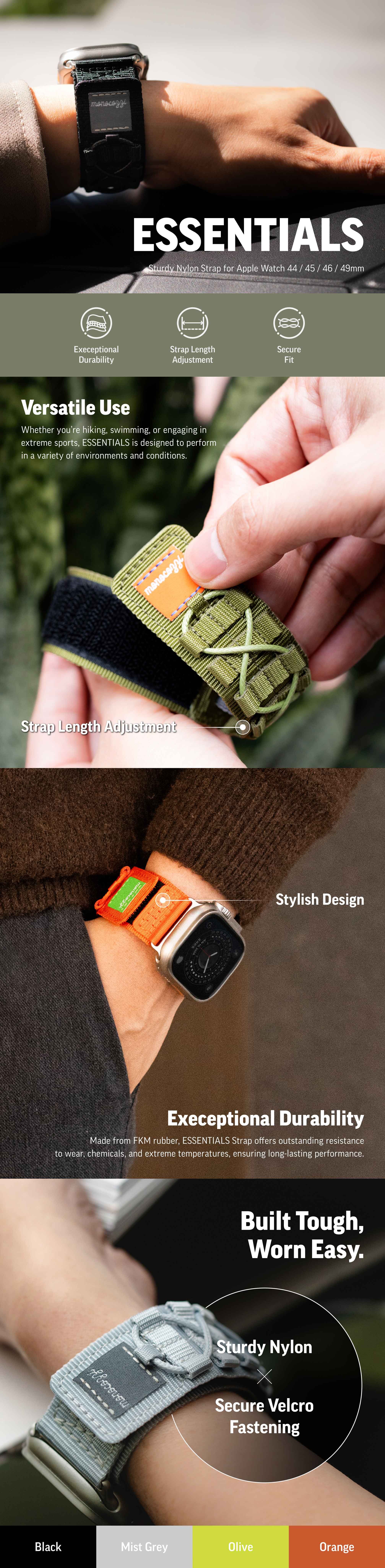 ESSENTIALS | Sturdy Nylon Strap for Apple Watch 44/45/46/49mm - Orange