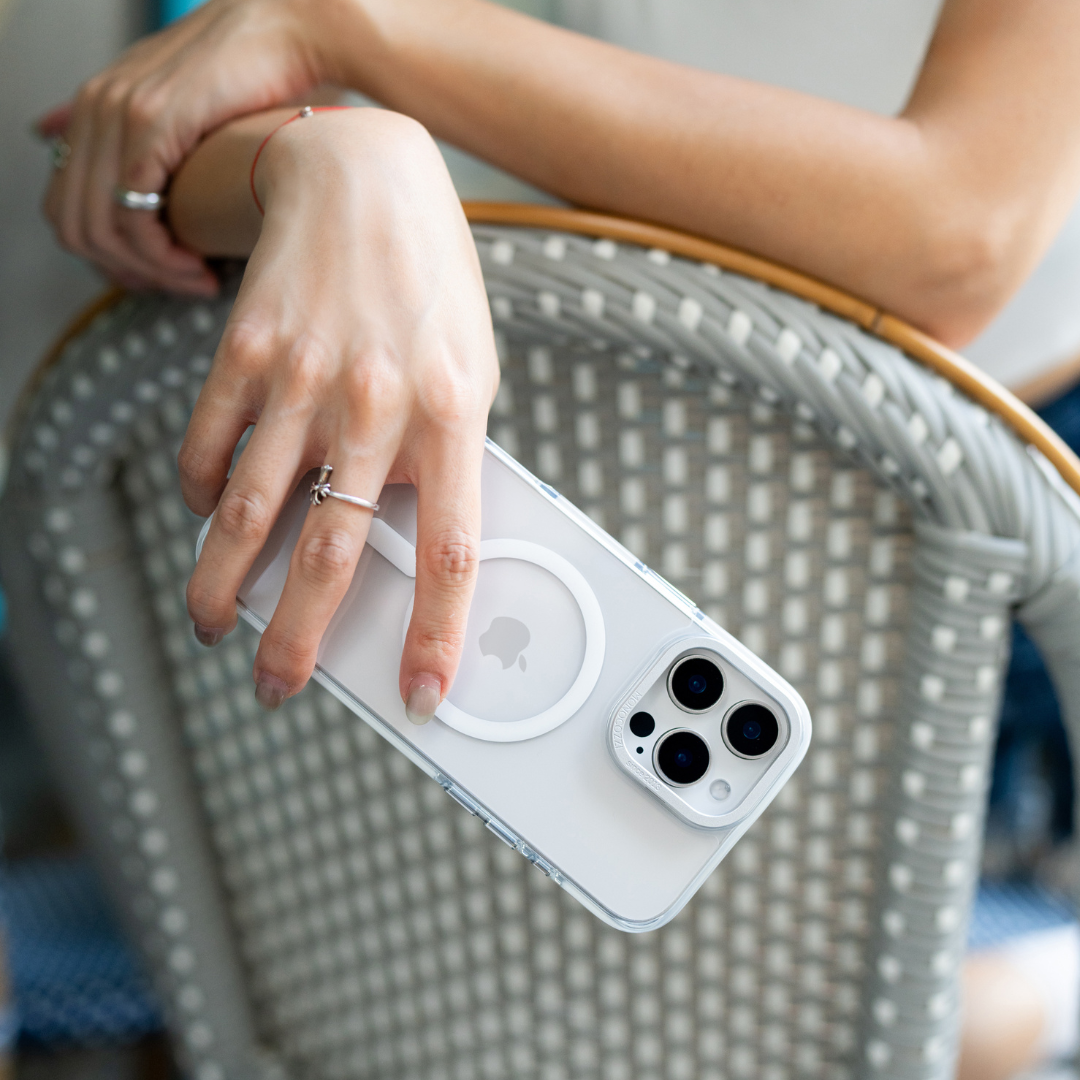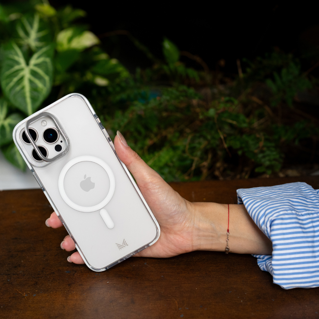 The LUCID transparent case satisfies the protectiveness by providing 10 feet certified shock protection with it's TPU bumper as a dust-free armour for your new iPhone. Its minimal design blends naturally with the iPhone and you can barely feel its existence. The innovation metal lens protector also works a phone stand when needed. With the magnetic ring on the back cover, it supports all the MagSafe accessories and able to be charged wirelessly. This very minimal simple case is actually doing a lot for you.