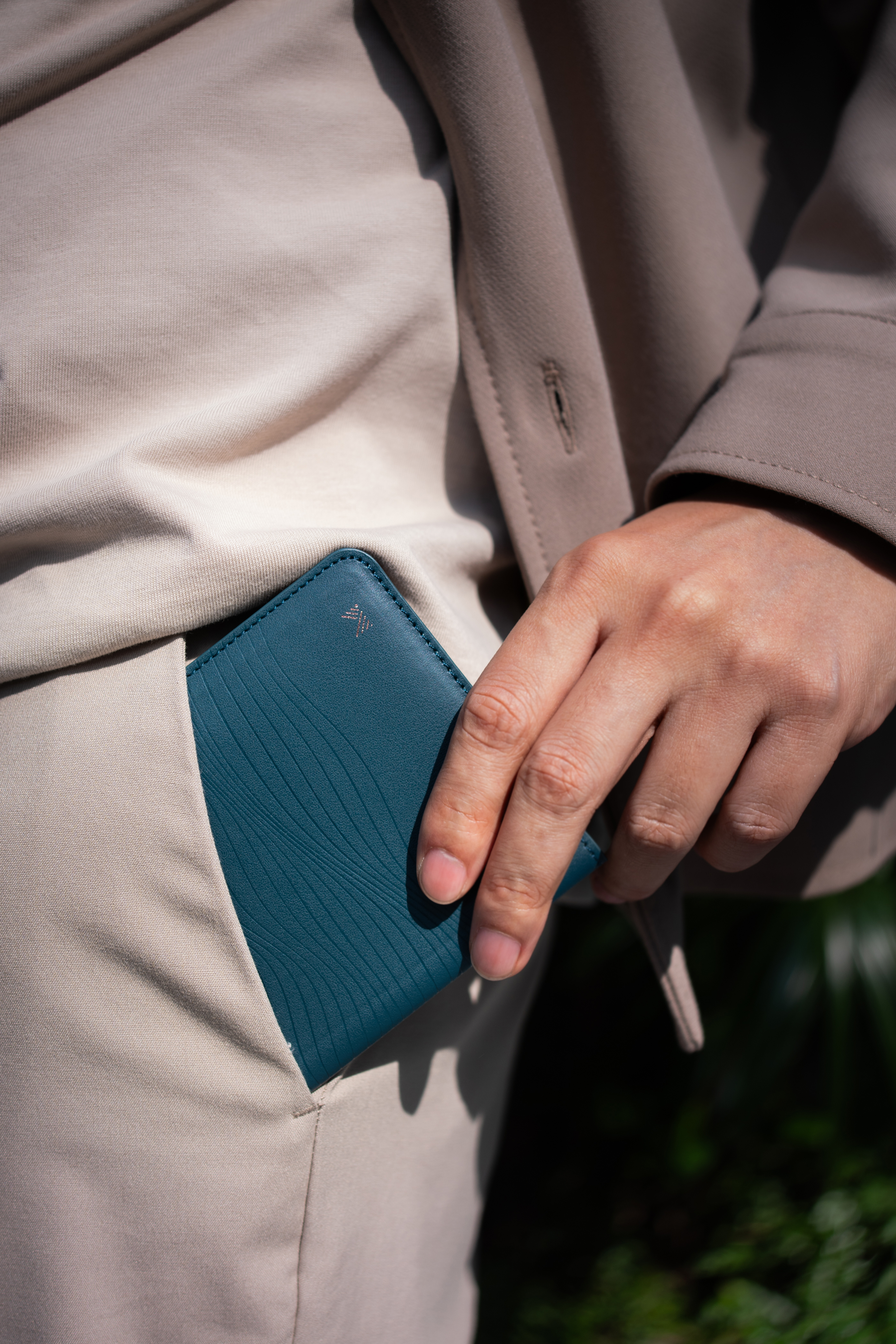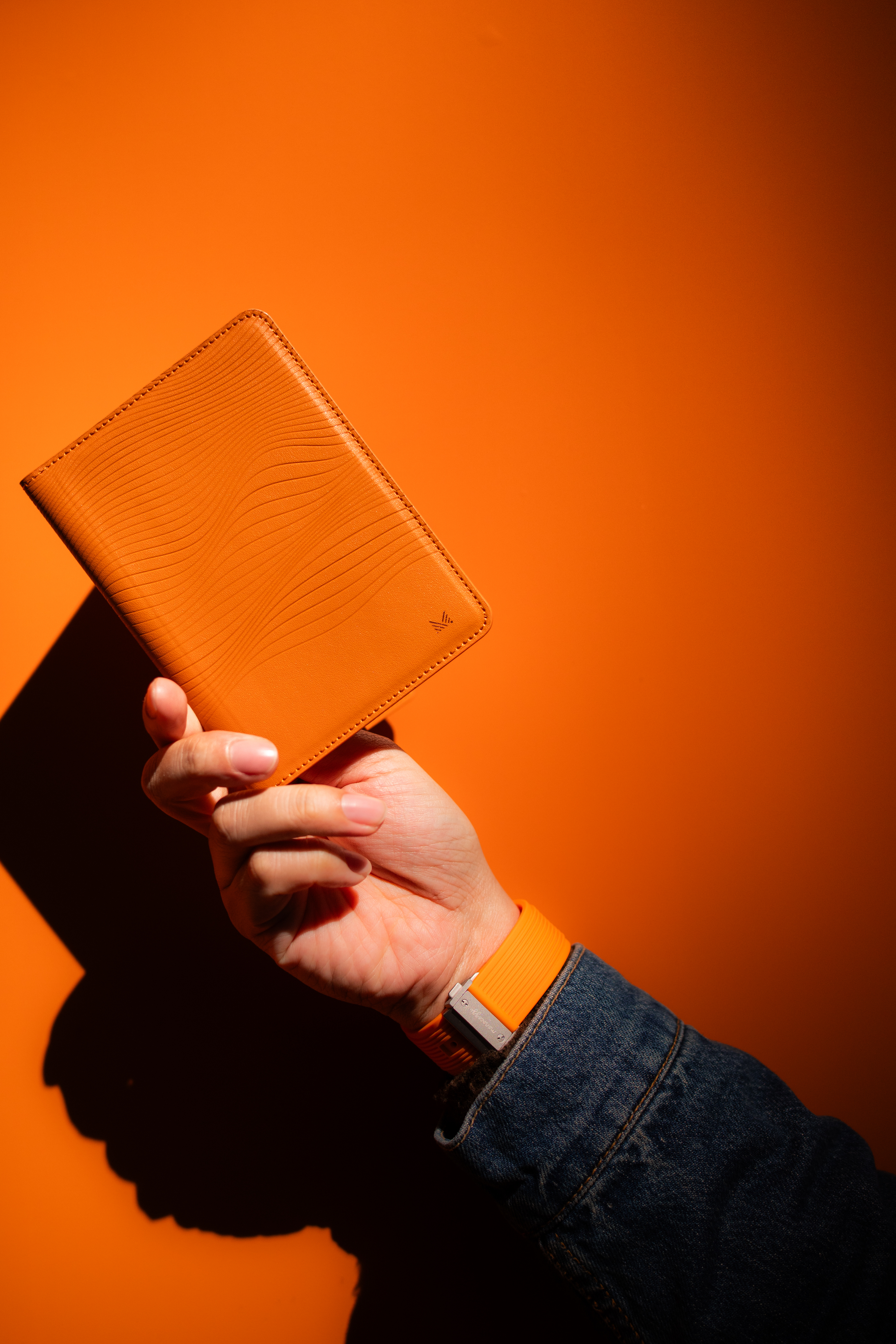 MONOCOZZI biodegradable leather passport holder: sustainable & stylish travel essential with RFID protection.
