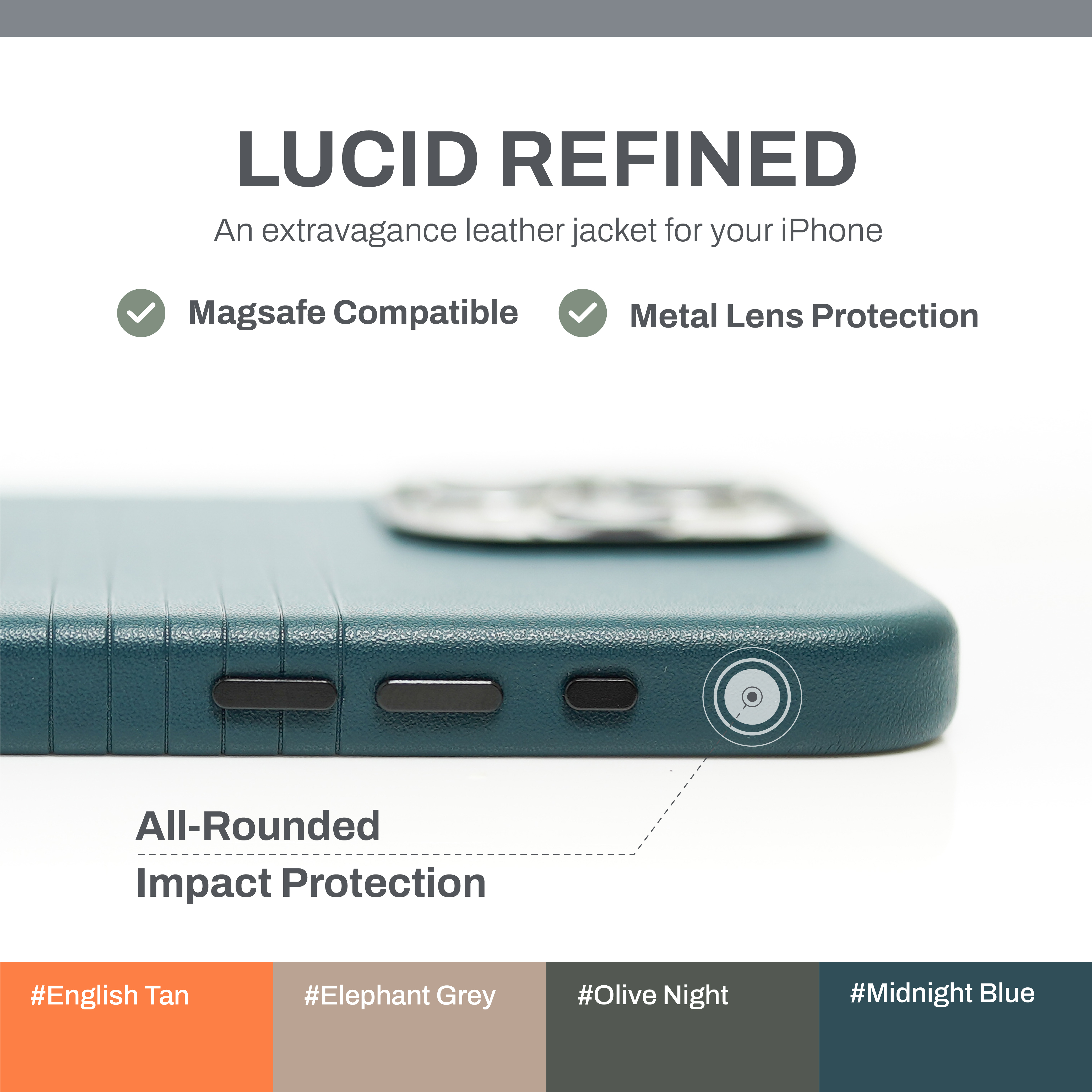 The MONOCOZZI LUCID Refined phone case is a premium quality, biodegradable leather case designed specifically for the iPhone 15. Made from sustainable, environmentally friendly materials, this case offers both stylish protection for your phone and peace of mind for the planet. The case is designed with a sleek, minimalist aesthetic, featuring a slim profile and precise cutouts for easy access to all buttons, ports, and features.
