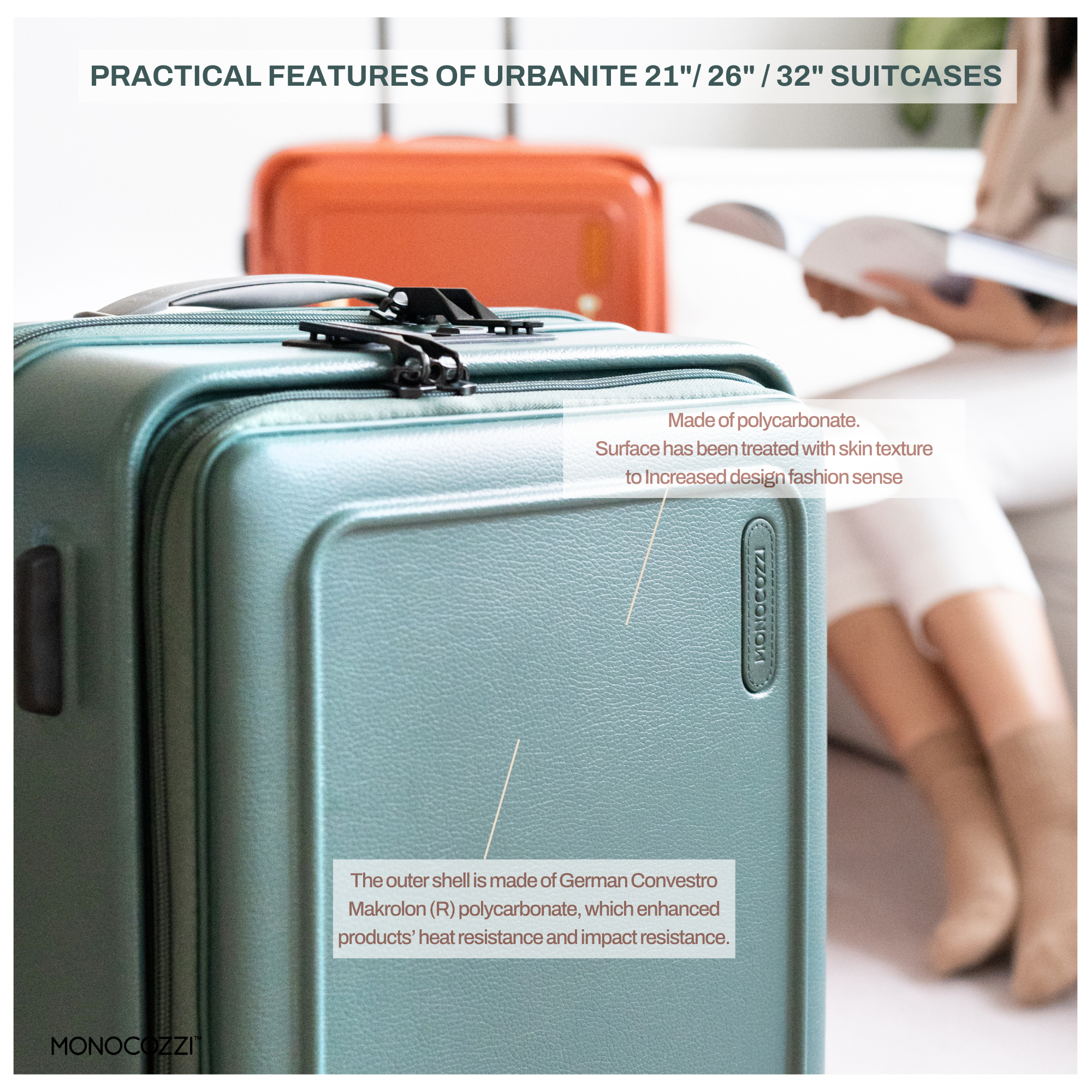 In summary, the MONOCOZZI URBANITE front-opening suitcase series embodies an exquisite blend of class, elegance, and functionality. From its meticulously organized compartments to the included AirTag protective sleeve, high-quality wheels, heat and impact-resistant exterior shell, TSA-approved locks, and anti-puncture double zipper design, every aspect of the URBANITE series exudes refinement and sophistication. Discover a travel experience unlike any other as you embrace the convenience, style, and effortless elegance of the URBANITE series.