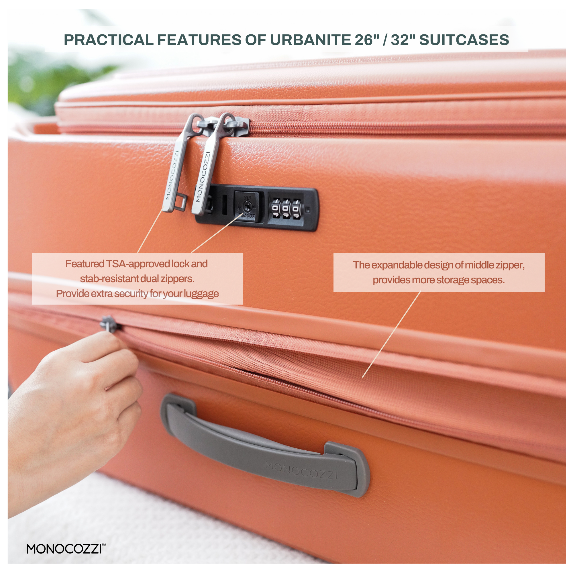 The URBANITE suitcases in the 26-inch and 32-inch sizes introduce a middle zipper expansion feature, unleashing additional storage space. Seamlessly pack your belongings with ease, but remember to adhere to weight limits to avoid any unforeseen airline fees. Embrace the freedom of extra space without compromising your travel plans.
