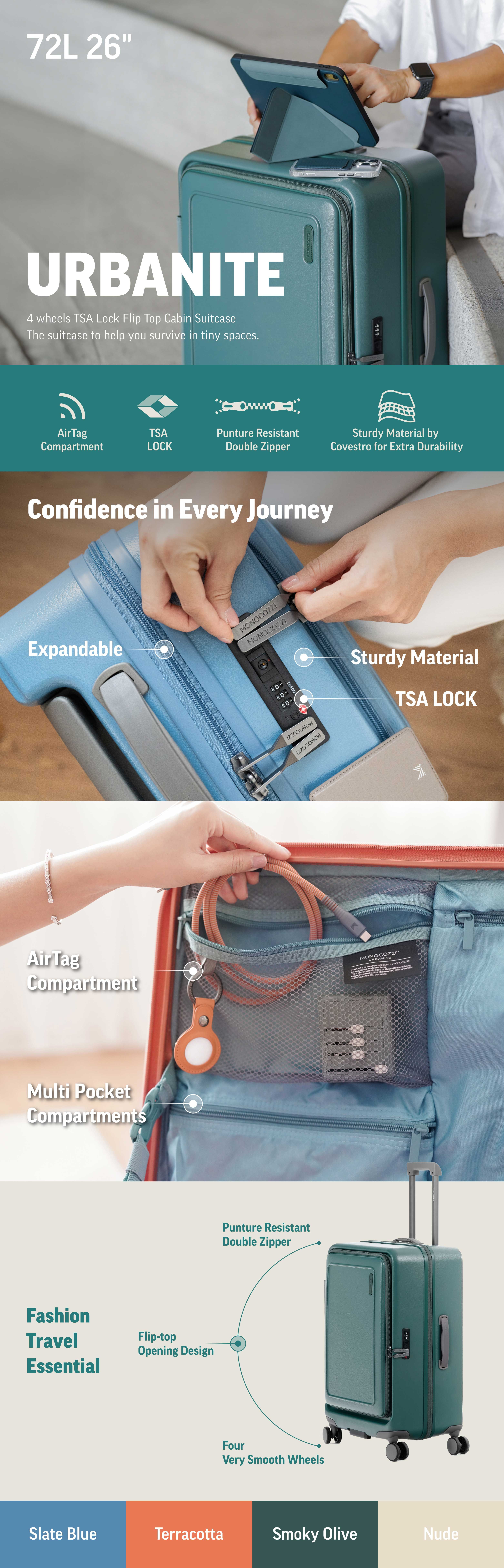 The MONOCOZZI Urbanite Suitcase is a reformed design for maximising the volume and versatility. The new design flat-top opening gives you full access of the suitcase even in a tiny space!
