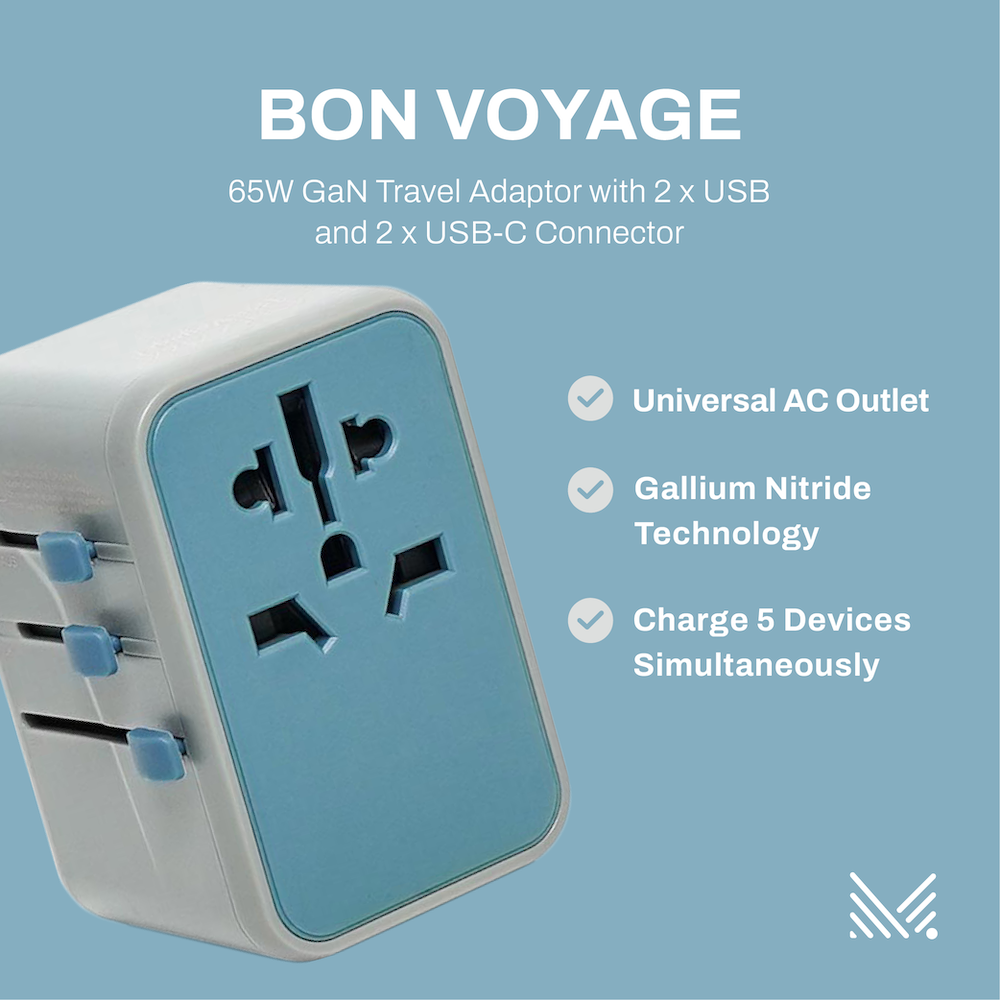 Bon Voyage 65W 旅行轉換器是一個非常多功能的旅行伴侶,幾乎可以在地球上的任何國家使用。它採用簡單的按下和滑動機制,可隨時在穿越邊境時切換插頭。此外,65W USB-C PD(功率傳輸)端口可實現對大多數 USB-C 設備的快速充電,尤其適用於擁有 USB-C 接口高功率設備(如筆記型電腦)的個人。這款轉換器還兼容多種插頭類型,使其成為頻繁旅行者極為實用和便利的解決方案。