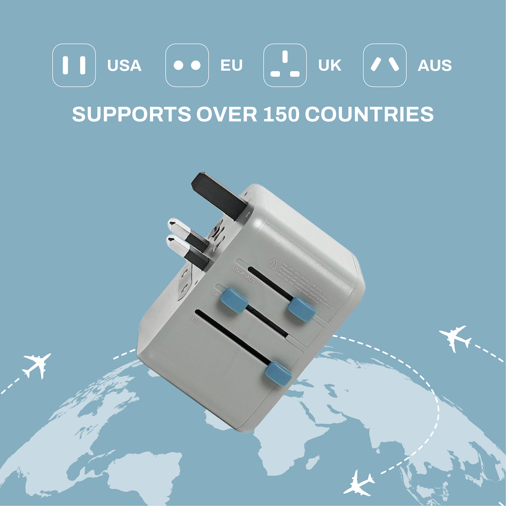 BON VOYAGE 萬用旅行插座支持全球超過 150 個國家/地區。 它確保您的設備可以在世界任何地方使用。