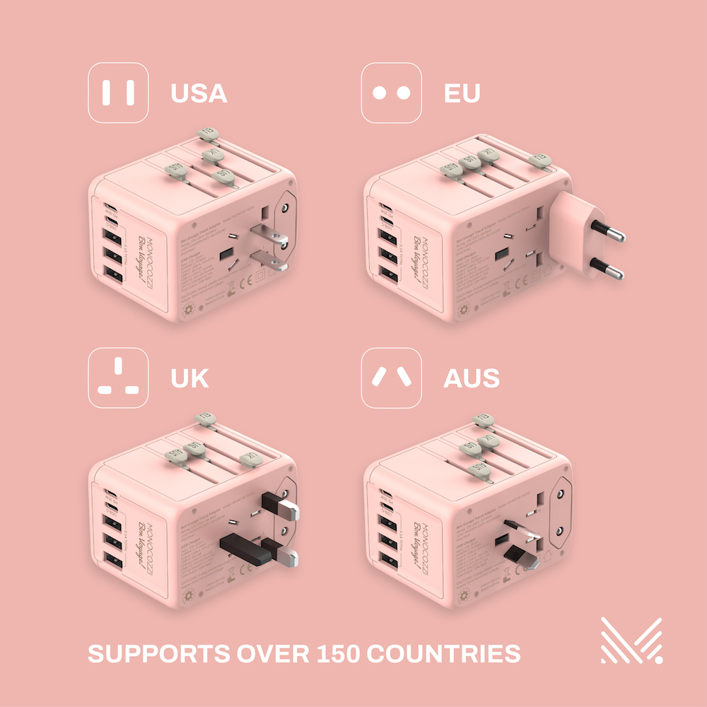 BON VOYAGE 萬用旅行插座支持全球超過 150 個國家/地區。 它確保您的設備可以在世界任何地方使用。