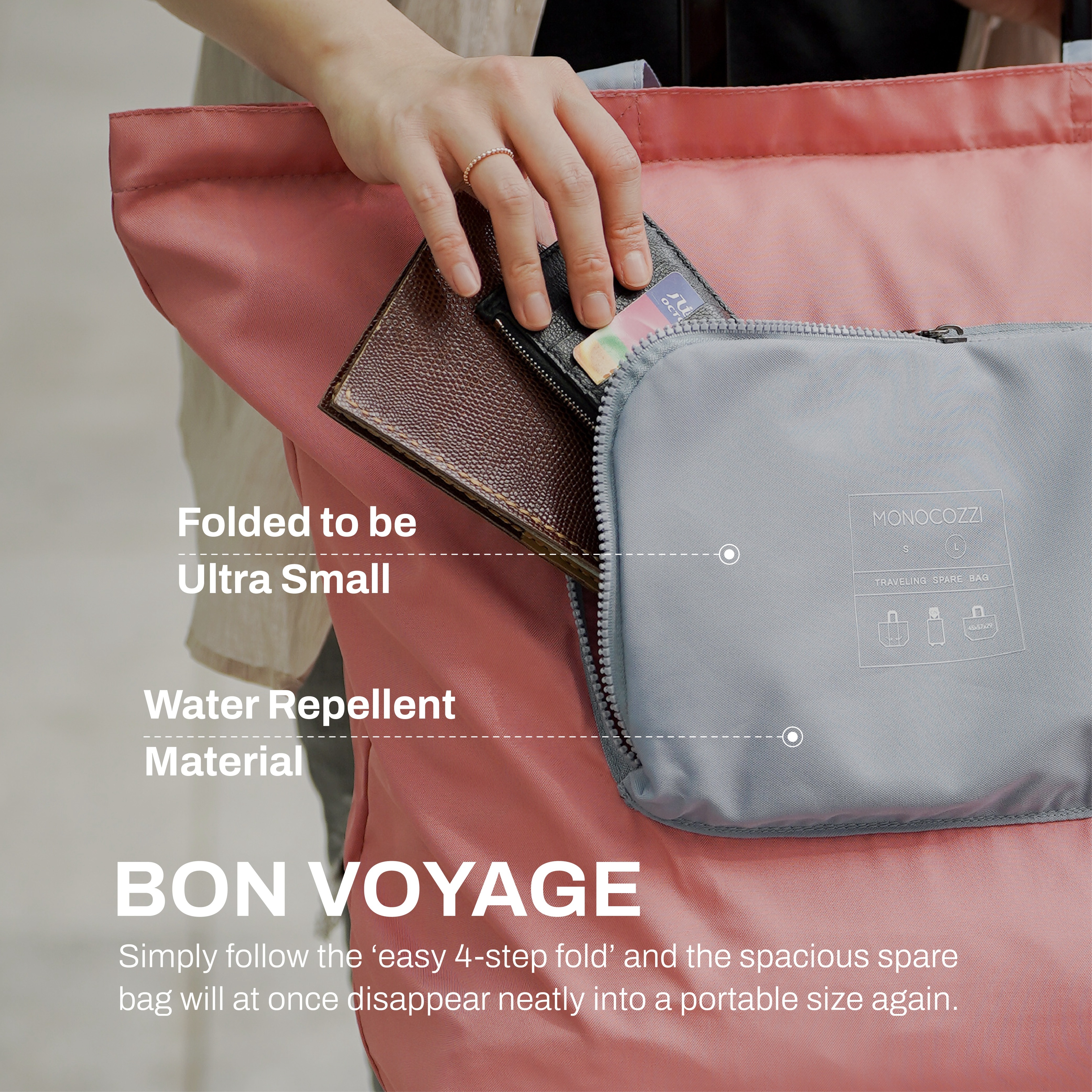 當每次旅行時想到因為行李箱沒有位子而不敢盡情購物實在是一件非常掃興的事。Monocozzi 的摺疊輕便後備旅行包以高質量環保輕巧抗水物料製造而成。雙拉牌設計令你可以把行李鎖起然後寄艙。背後的手提行李拉桿帶可以令你輕易將手提行李的拉桿插入然後穩穩的放在手提行李上而輕易的四摺便可以令他好好摺合收藏。