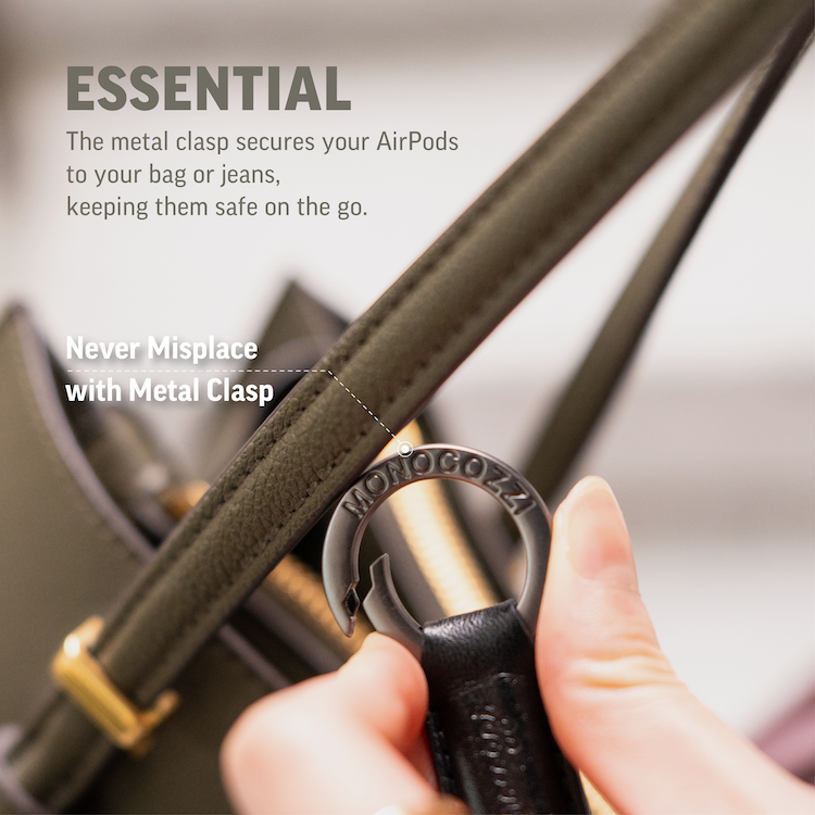 金屬搭扣可幫助您將 AirPods 固定在包包或牛仔褲上。 當你在路上時,你不會容易弄丟。
