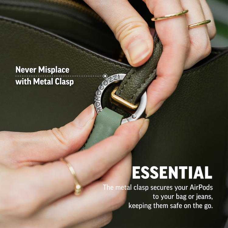 金屬搭扣可幫助您將 AirPods 固定在包包或牛仔褲上。 當你在路上時,你不會容易弄丟。