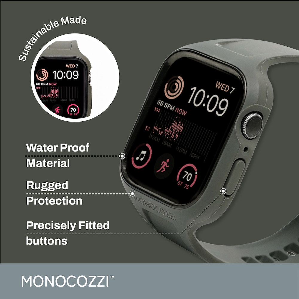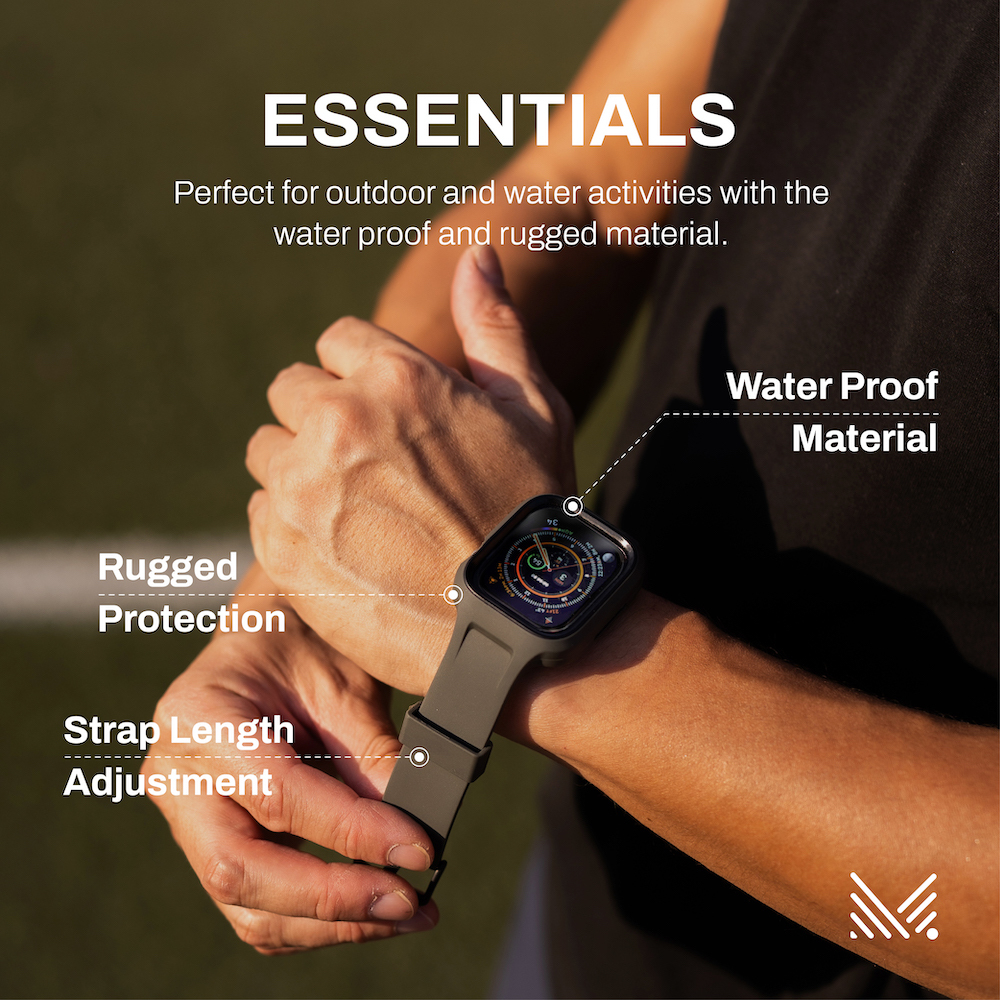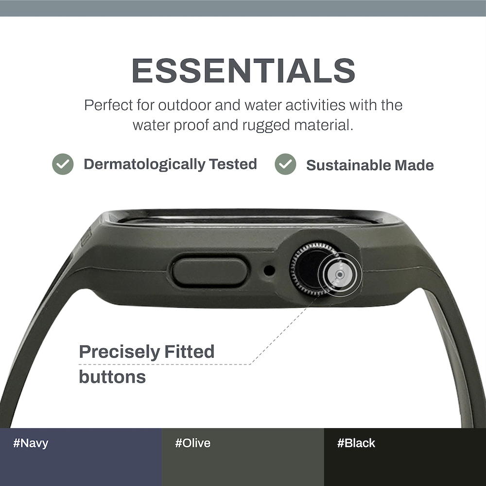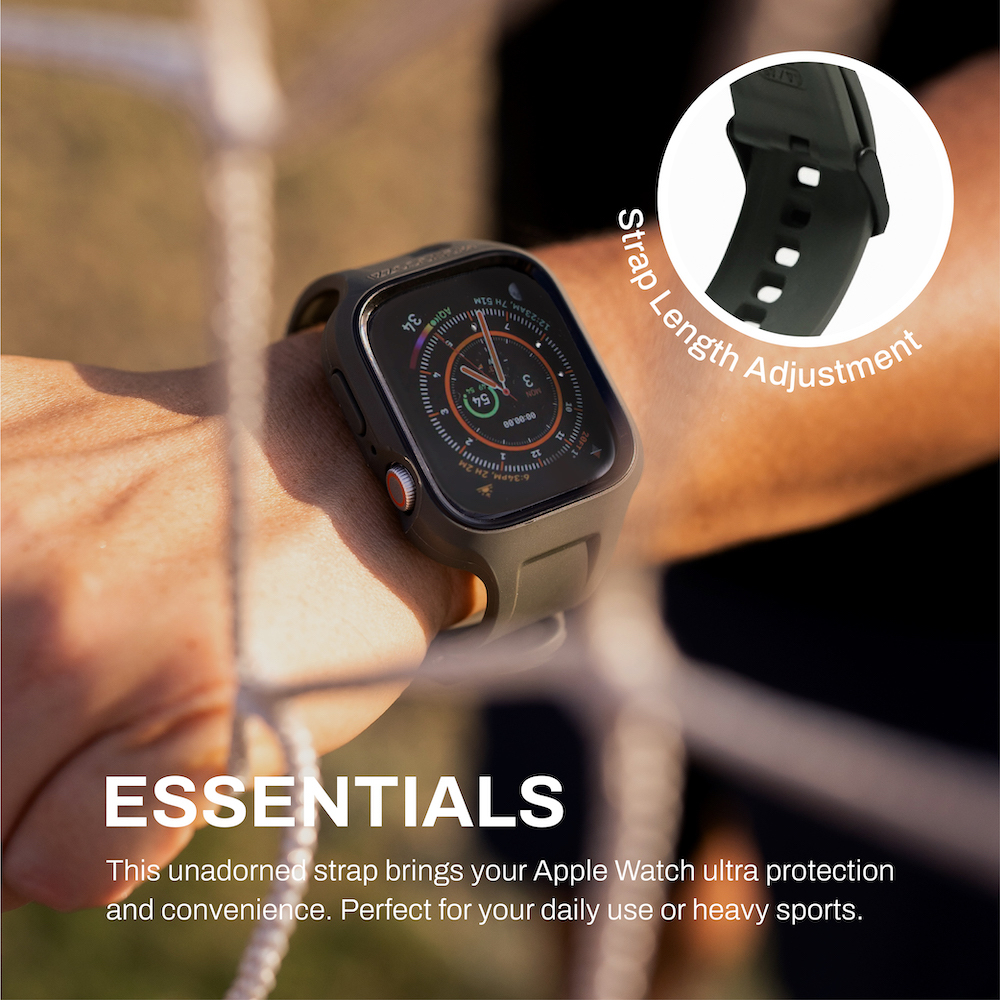 ESSENTIALS 防撞軟膠保護殼連錶帶l以簡約的外觀為您的 Apple Watch 提供終極保護。這款樸實的錶帶為您的 Apple Watch 提供超強的保護性和便利性。非常適合您每天日常使用或劇烈運動。