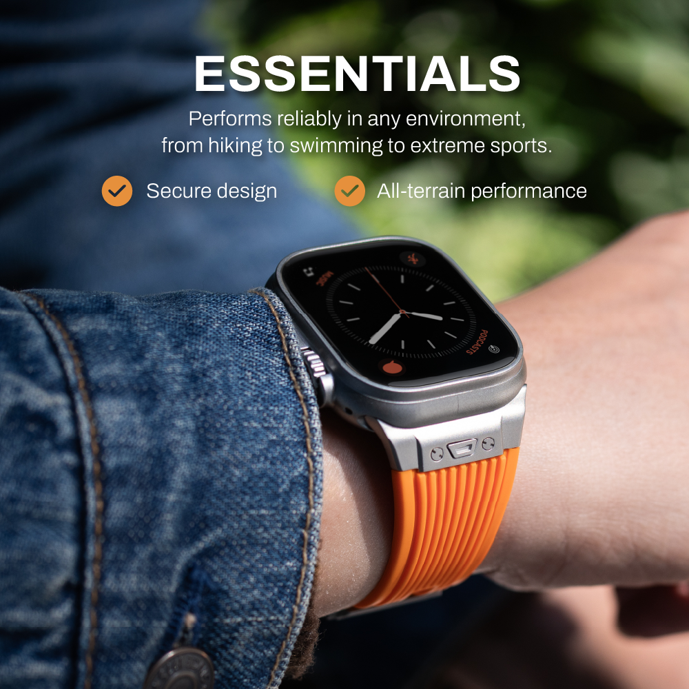 無論您是在行山、游泳還是參加極限運動,ESSENTIALS 錶帶都是為各種環境和條件下的表現而設計的。