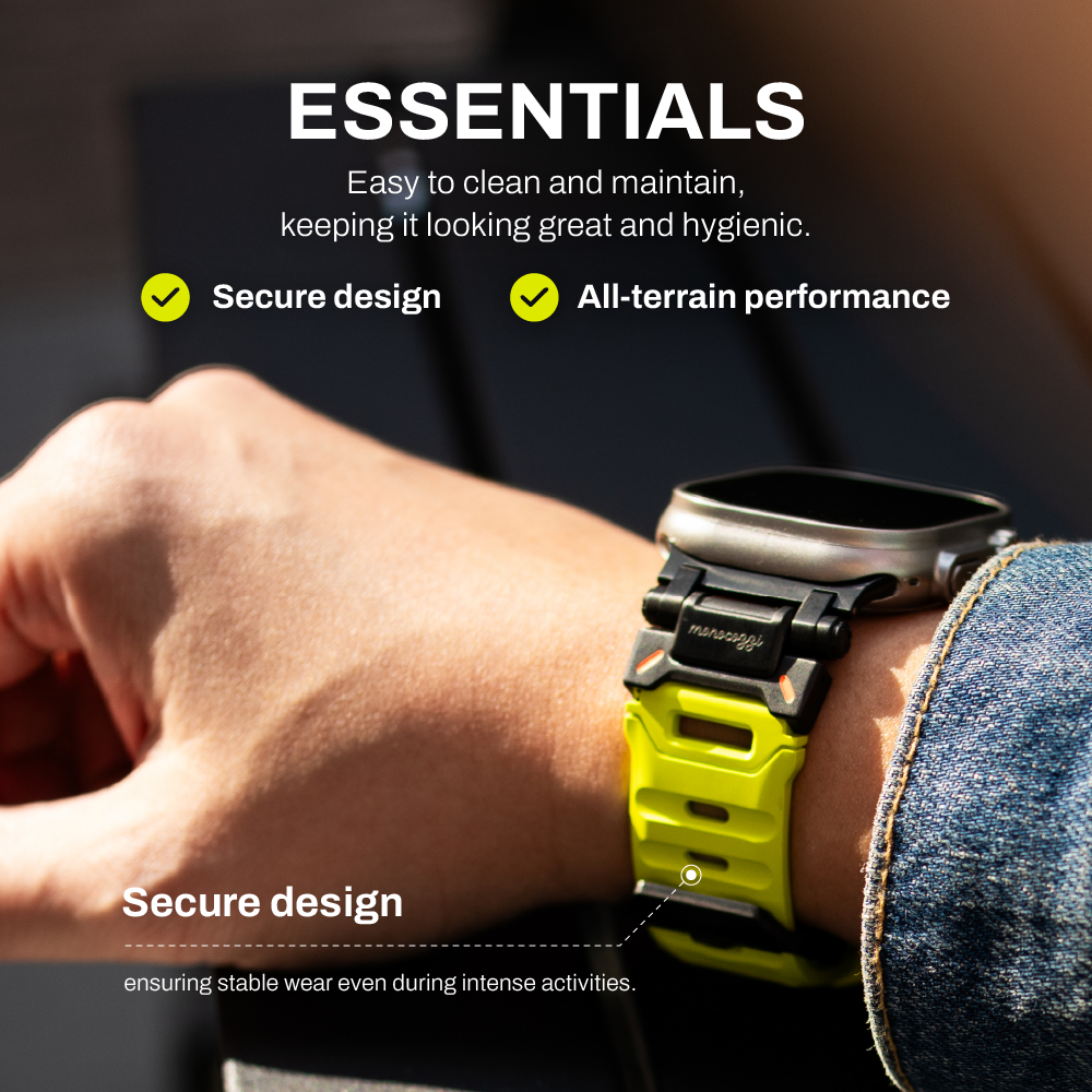 無論您是在行山、游泳還是參加極限運動,ESSENTIALS 錶帶都是為各種環境和條件下的表現而設計的。