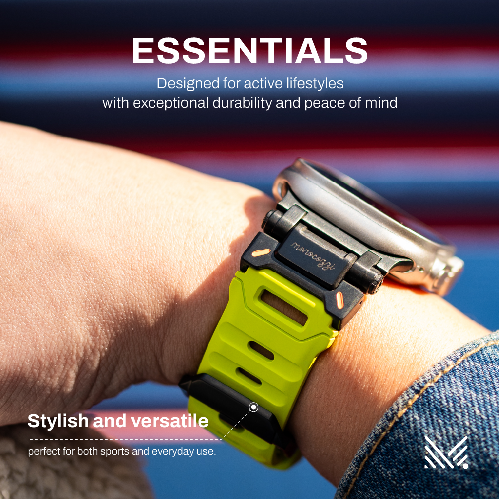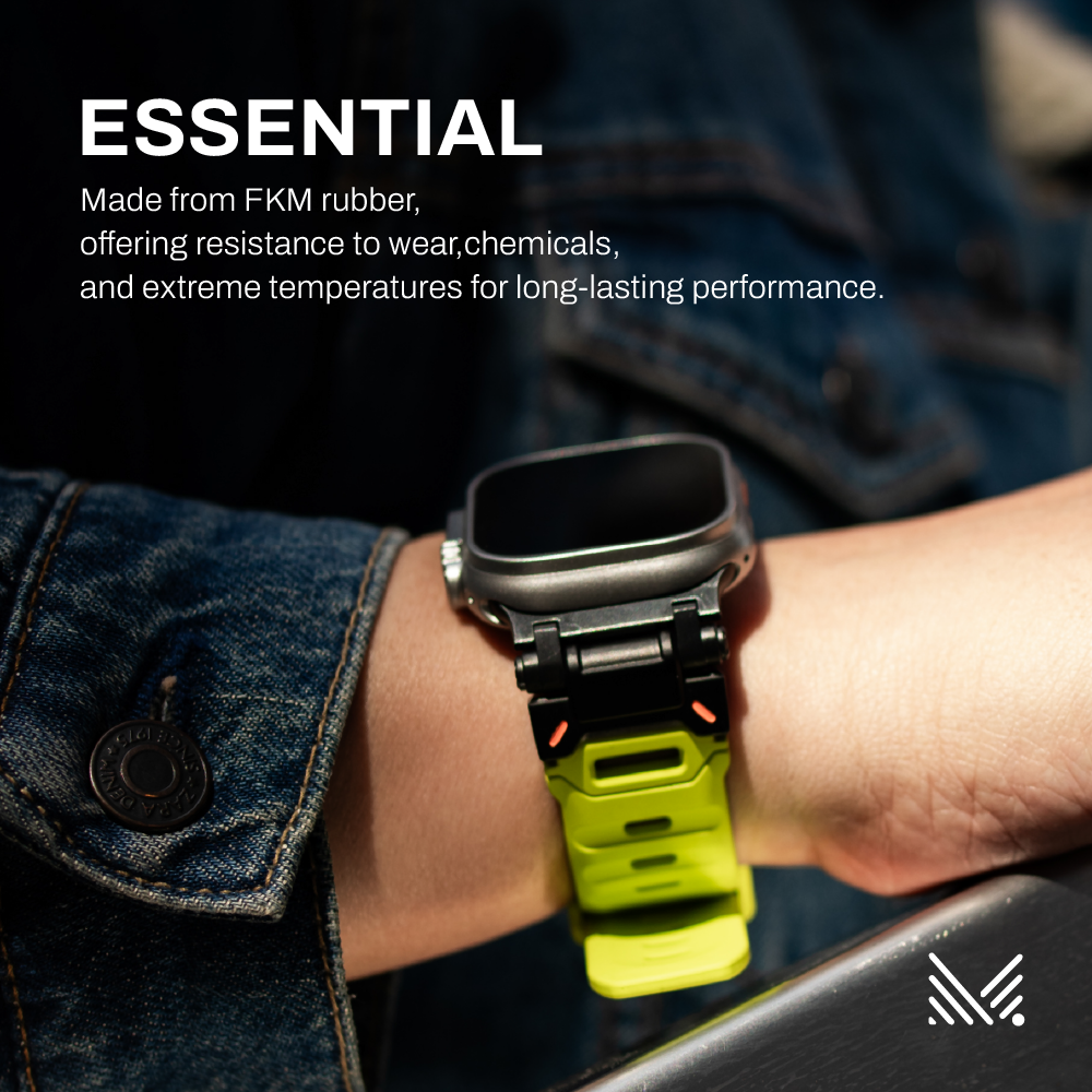 這款 Apple Watch 錶帶結合了 FKM 橡膠的堅固特性,確保在您的冒險中保持穩固且時尚。它是對於渴望刺激並尋求極端運動可靠性的完美選擇。