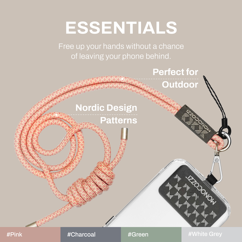 ESSENTIALS 繩索型電話揹帶是專為新一代設計的時尚配飾。 您可以解放你的雙手,無需擔心忘記手機放置位置。 這條 5 毫米直徑的繩索型電話揹帶時尚而且安全。 現在它還配備了新 AirPods Pro 的掛繩。 此外,它們十分容易的安裝在所有 iPhone 手機殼上,並且兼容所有型號的 iPhone。