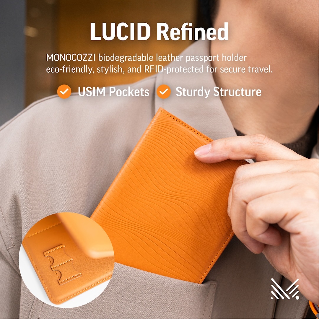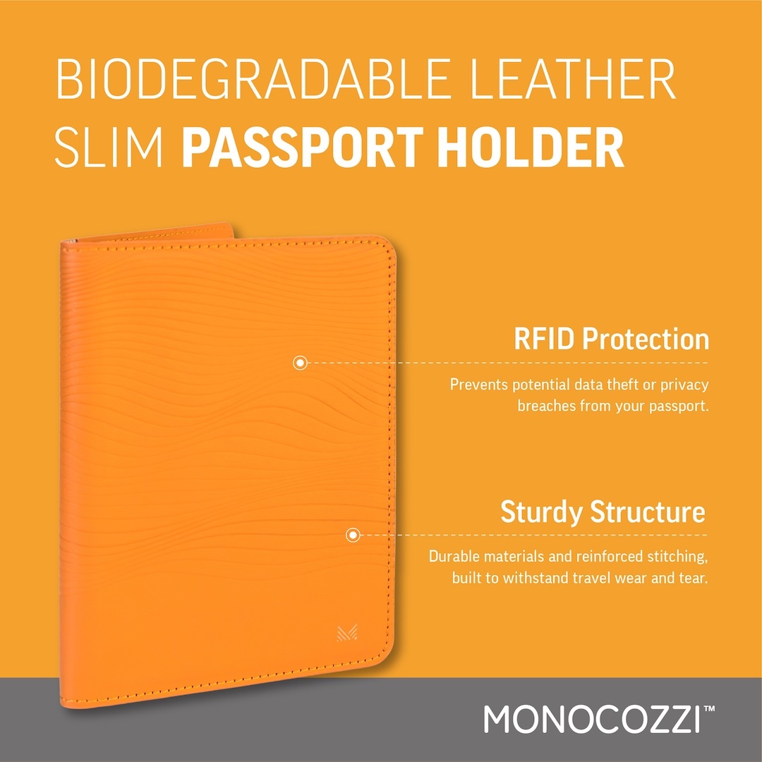 MONOCOZZI 環保皮革護照夾是一款可持續且時尚的旅行者配飾。這款護照夾採用可持續材料製成,旨在減少對環境的影響,加有 RFID保護確保您的護照安全有序。