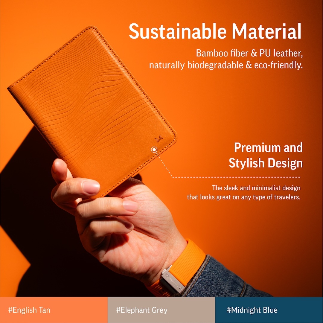 護照套由竹纖維和 PU 皮革混合製成,可隨著時間的推移自然生物降解,不會在環境中留下任何有害殘留物。