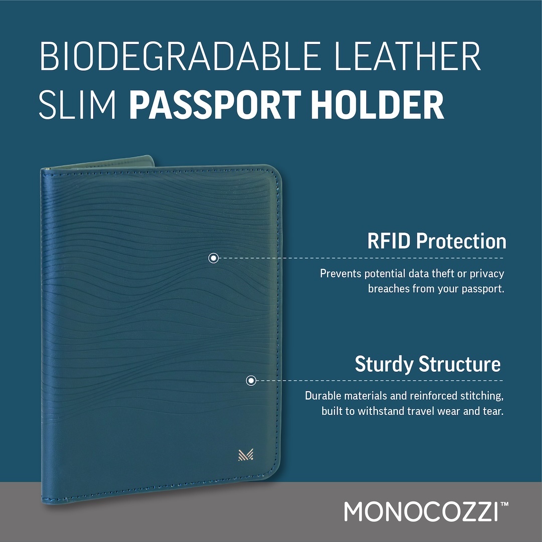 MONOCOZZI 環保皮革護照夾是一款可持續且時尚的旅行者配飾。這款護照夾採用可持續材料製成,旨在減少對環境的影響,加有 RFID保護確保您的護照安全有序。