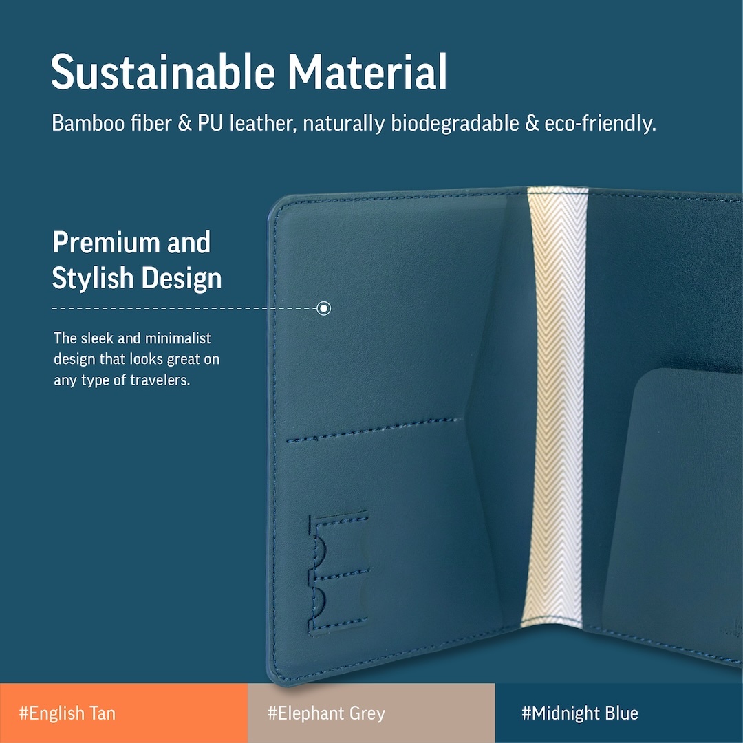 護照套由竹纖維和 PU 皮革混合製成,可隨著時間的推移自然生物降解,不會在環境中留下任何有害殘留物。