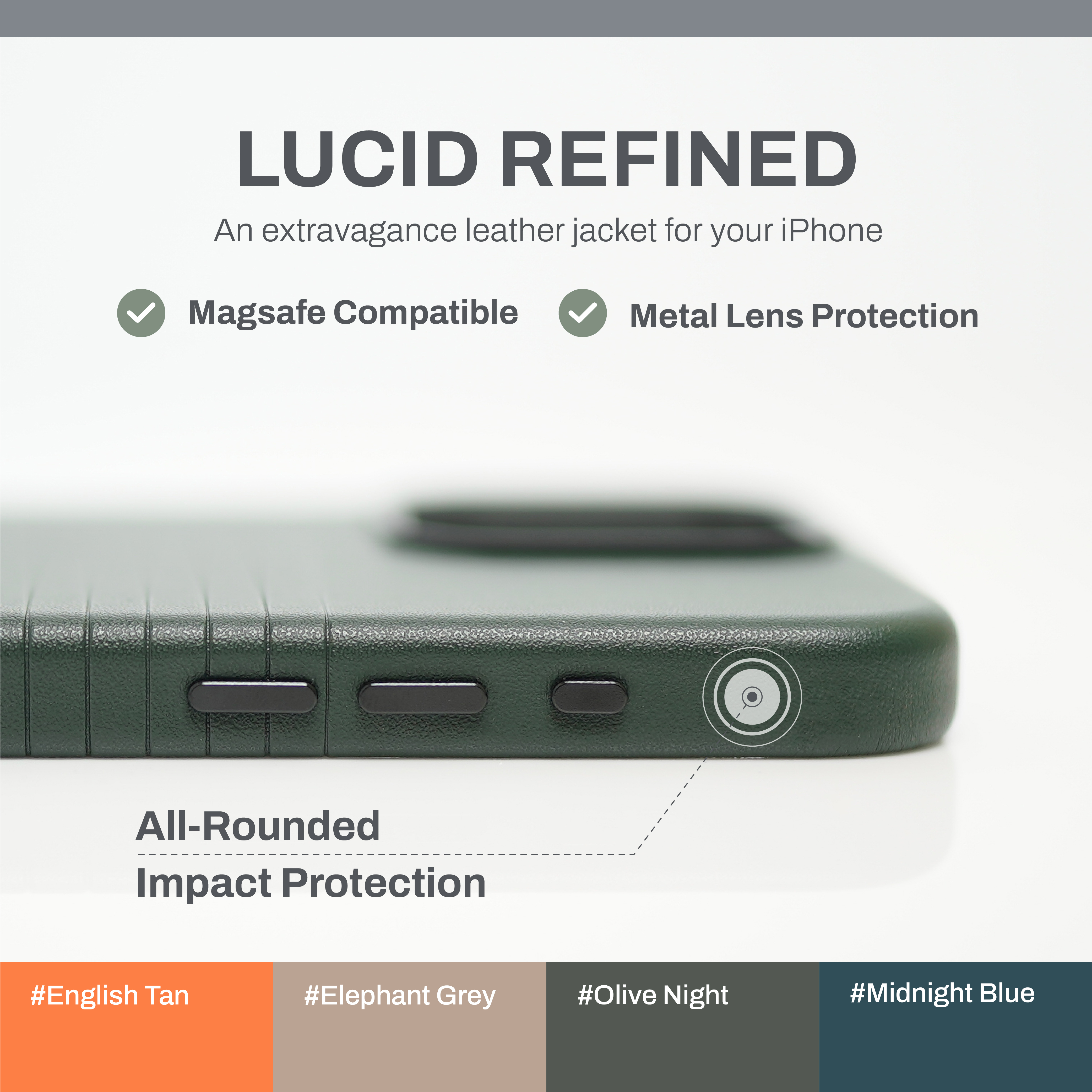 for iPhone 15 Pro | LUCID Refined | 可生物化解皮革兼容 MagSafe手機保護殻 - 橄欖夜